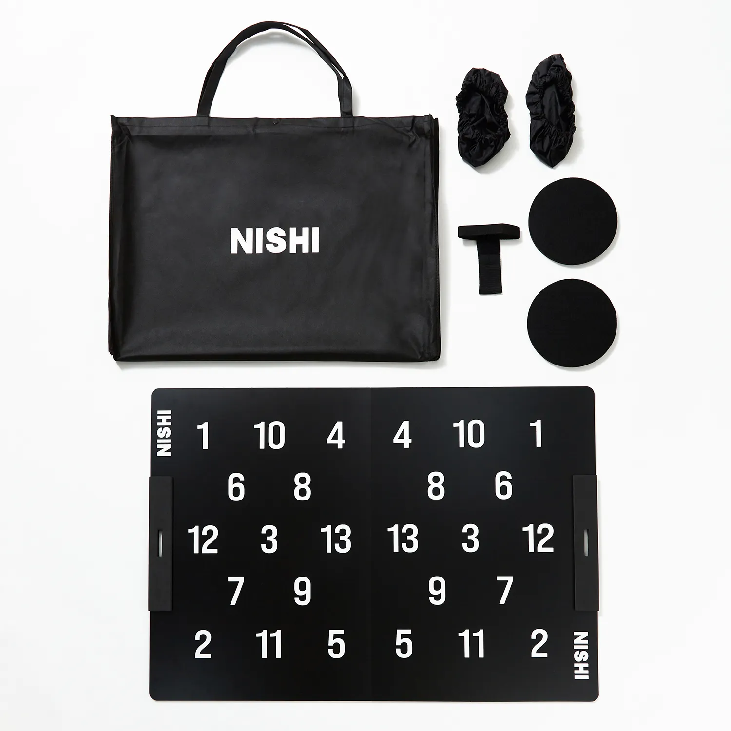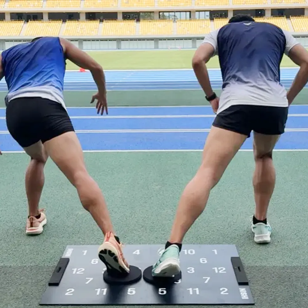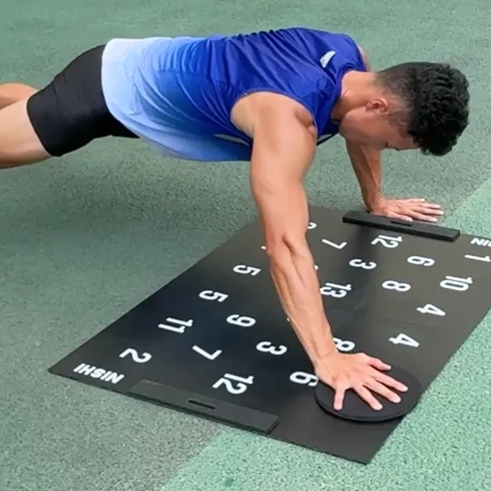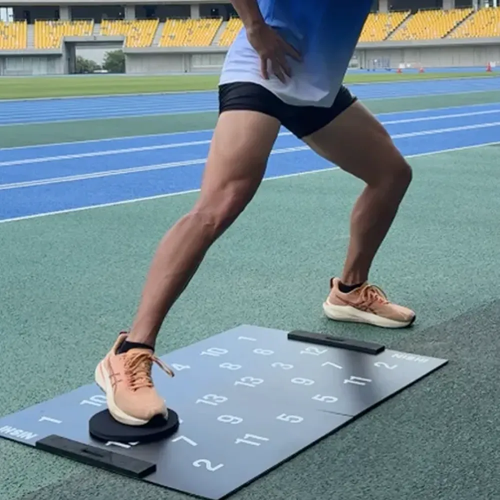 付属のフットカバーを靴の上から装着し、または丸型パッドに手足を乗せてボードの上を滑るトレーニングを繰り返します。