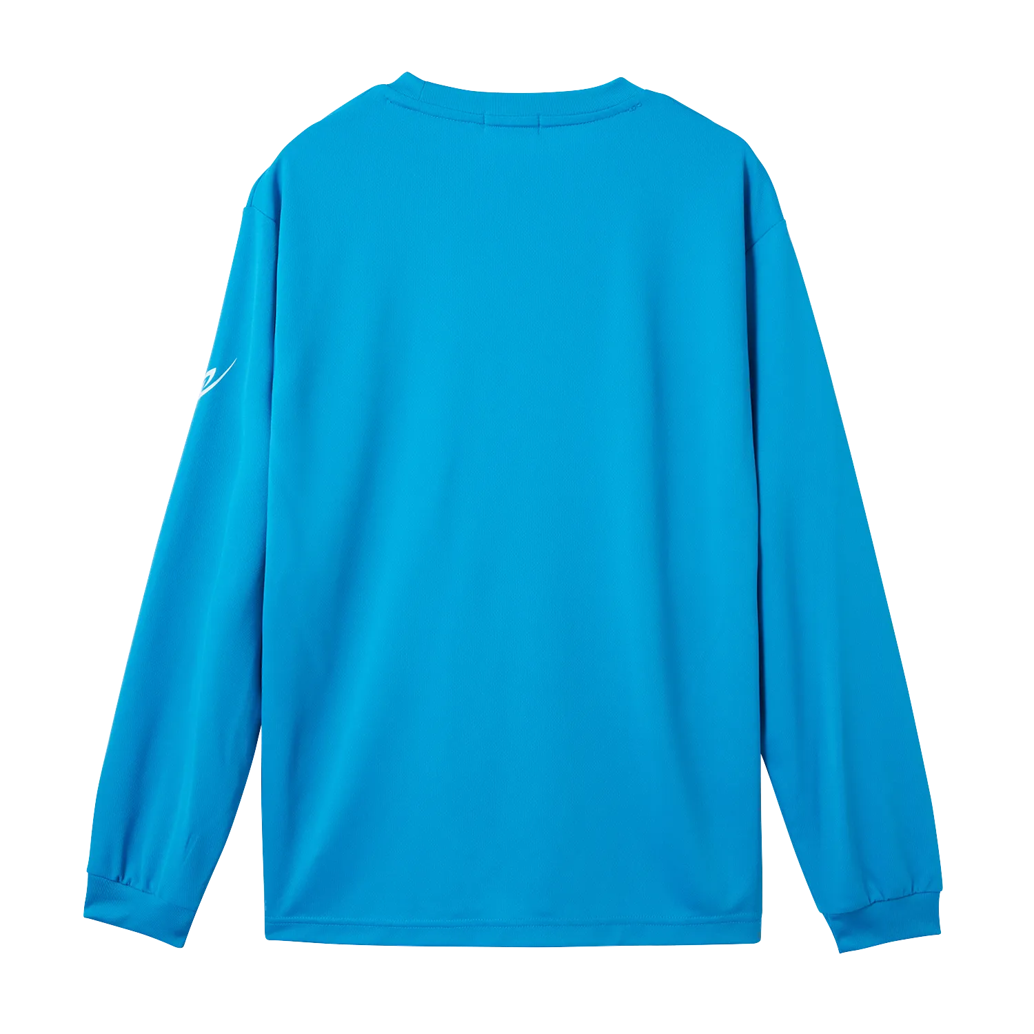 限界に挑戦する陸上競技アスリートのトレーニングシーンで活躍する、NO LIMIT ATHLETEのロゴが縦にプリントされたベーシックなロングスリーブシャツ。 ポリエステル100%で速乾性に優れた素材「マイクロアルファ」を採用。